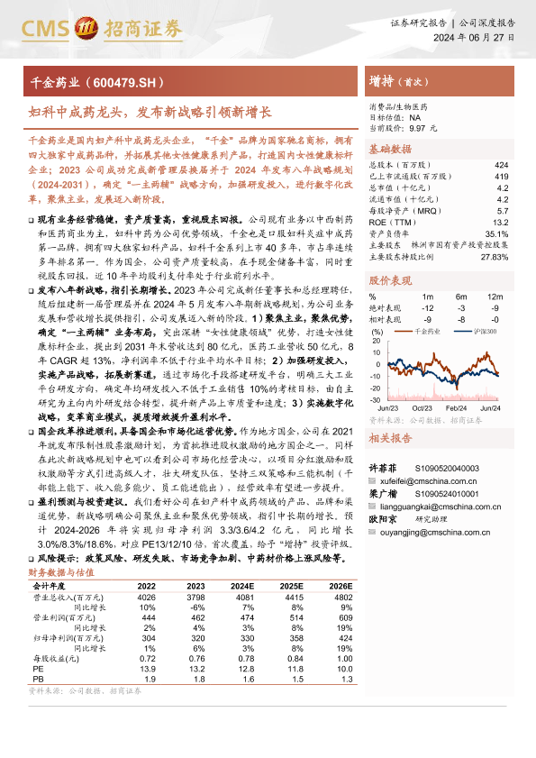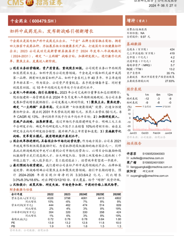 【海通证券】【20240627】千金药业-600479.SH-妇科中成药龙头,发布新战略引领新增长-22页
