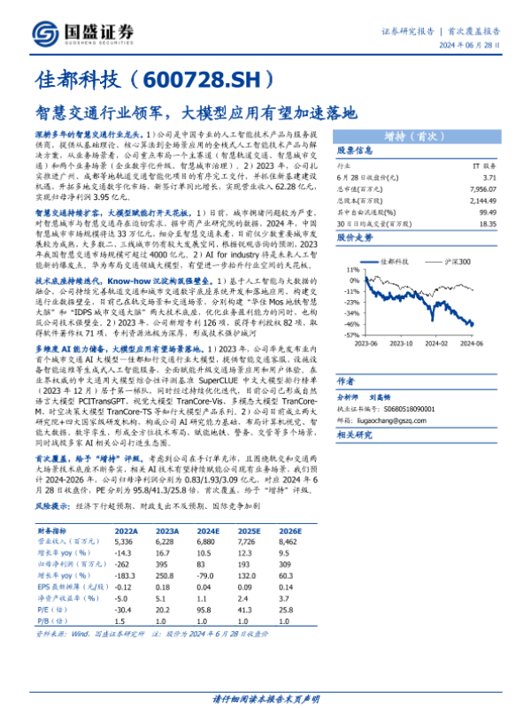 【国盛证券】【20240628】佳都科技(600728.SH)智慧交通行业领军,大模型应用有望加速落地-19页
