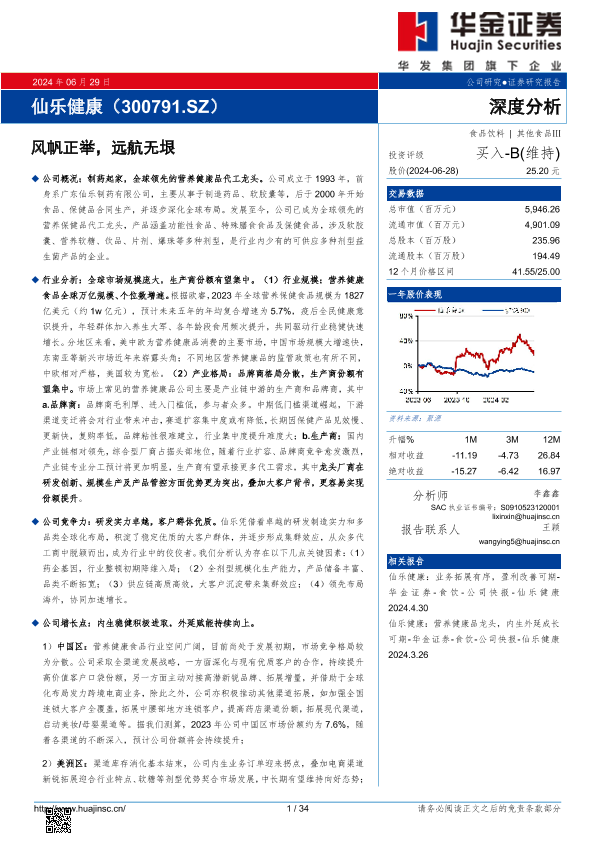 【华金证券】【20240629】仙乐健康深度分析:风帆正举,远航无垠-34页