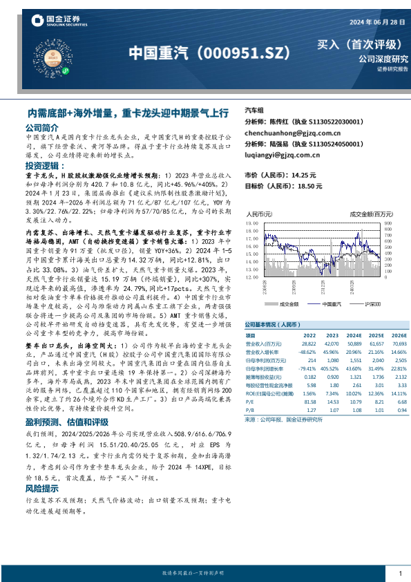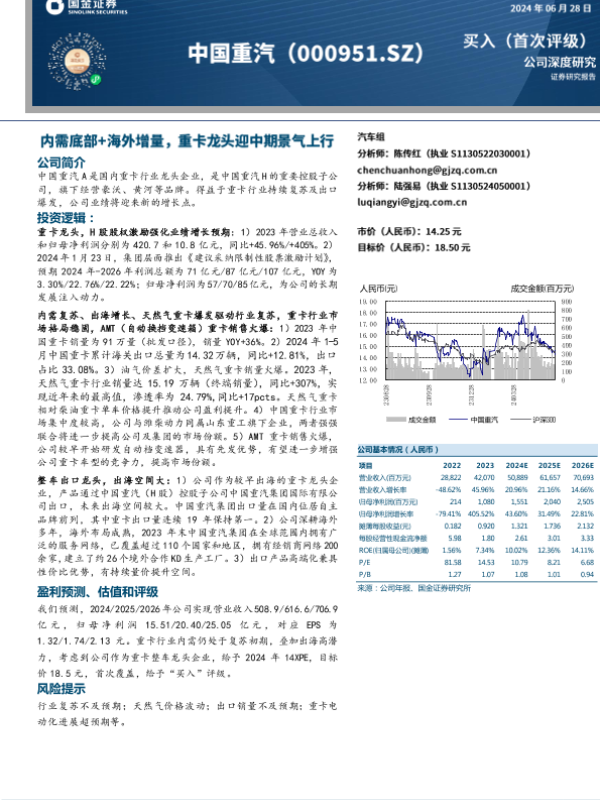 【国金证券】【20240628】中国重汽-000951.SZ-内需底部+海外增量,重卡龙头迎中期景气上行-22页