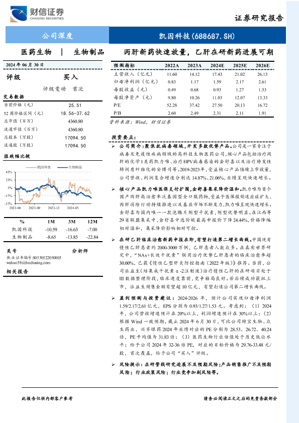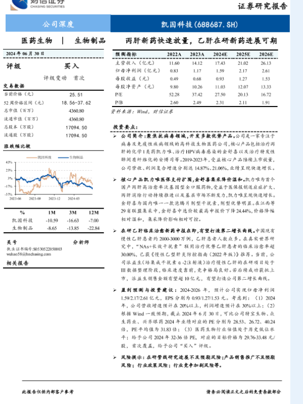 丙肝新药 乙肝研发 凯因科技 生物医药 证券分析