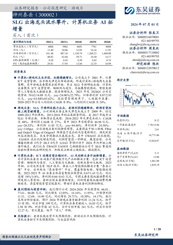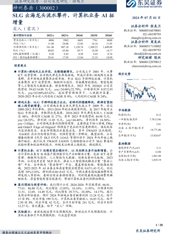 【东吴证券】【20240701】SLG出海龙头流水攀升,计算机业务AI拓增量-20页