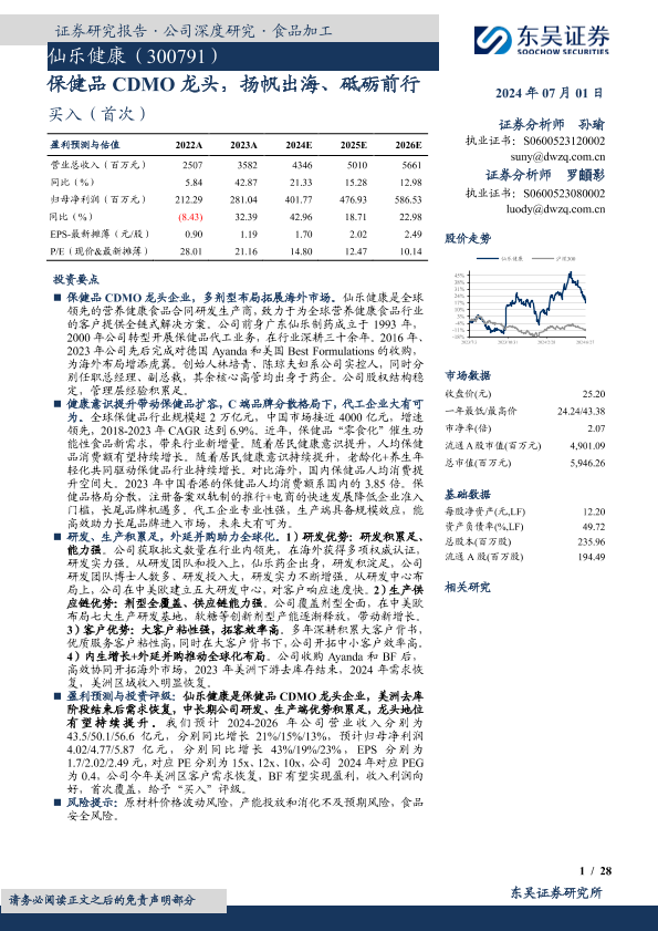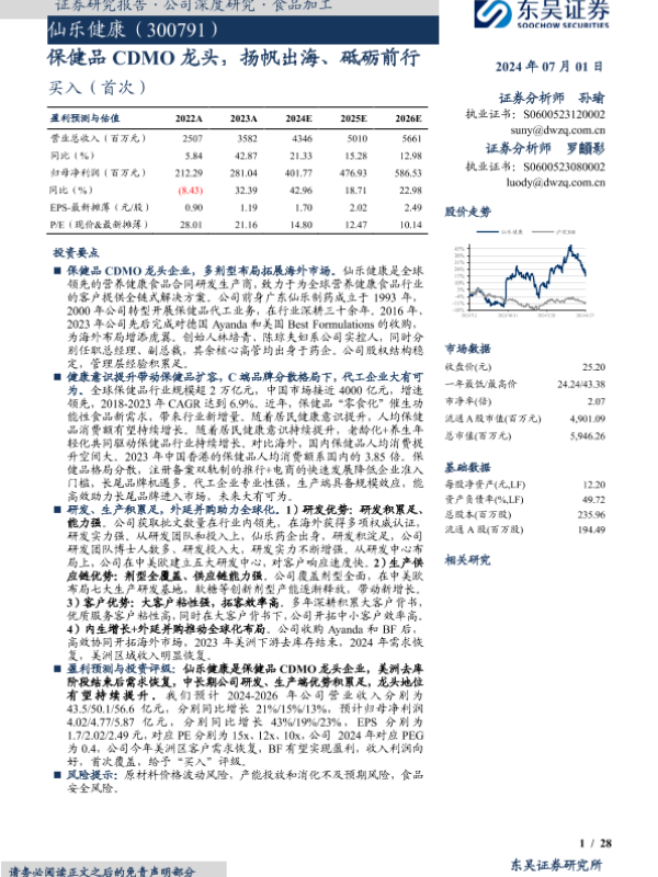 【东吴证券】【20240701】仙乐健康-300791.SZ-保健品CDMO龙头,扬帆出海、砥砺前行-28页
