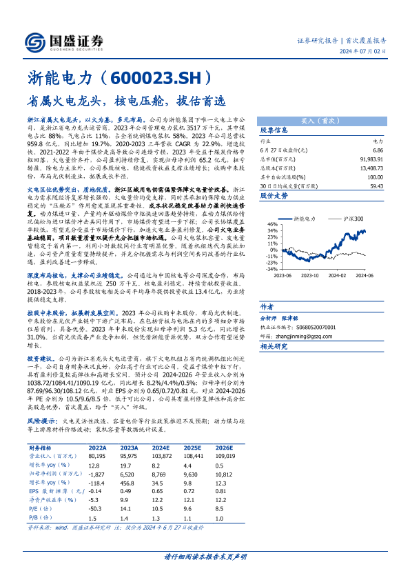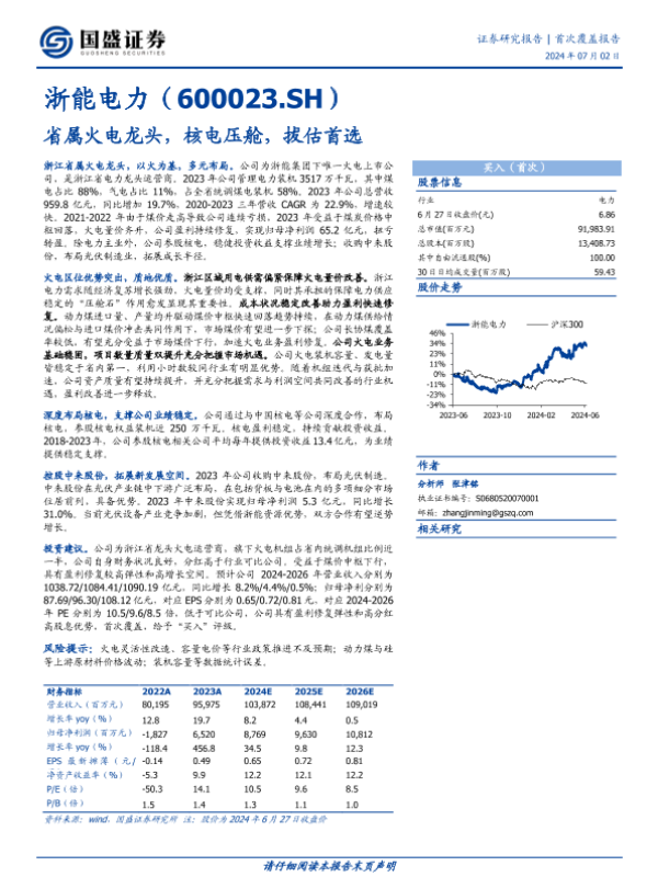 【国盛证券】【20240702】浙能电力(600023.SH)省属火电龙头,核电压舱,拔估首选-22页