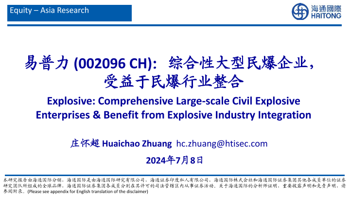 【海通国际】【20240708】综合性大型民爆企业,受益于民爆行业整合-55页