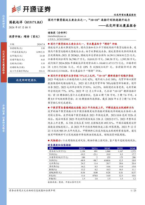 【开源证券】【20240708】国内干散货航运主要企业之一,“10+10”造船计划快速提升运力-23页