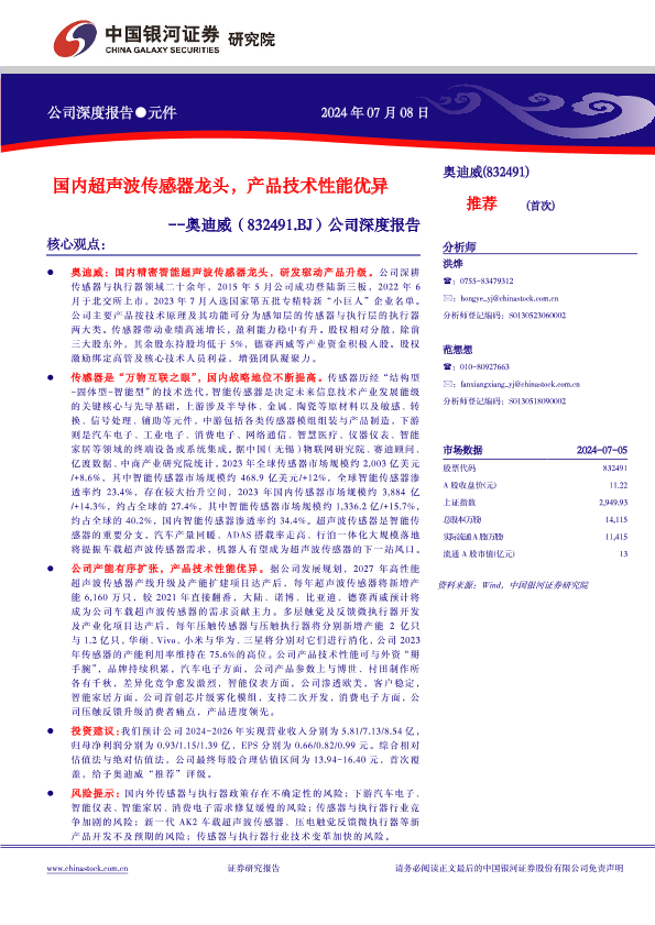【银河证券】【20240708】国内超声波传感器龙头,产品技术性能优异-24页
