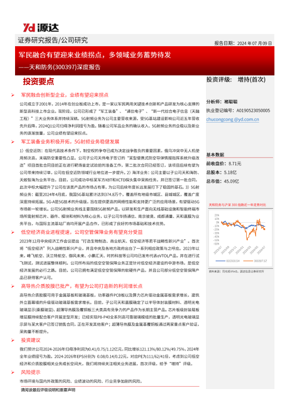 【源达信息】【20240709】天和防务-300397.SZ-深度报告:军民融合有望迎来业绩拐点,多领域业务蓄势待发-32页