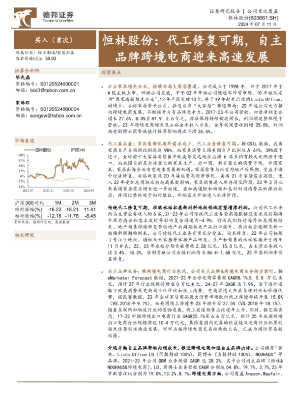 【德邦证券】【20240711】恒林股份:代工修复可期,自主品牌跨境电商迎来高速发展-26页