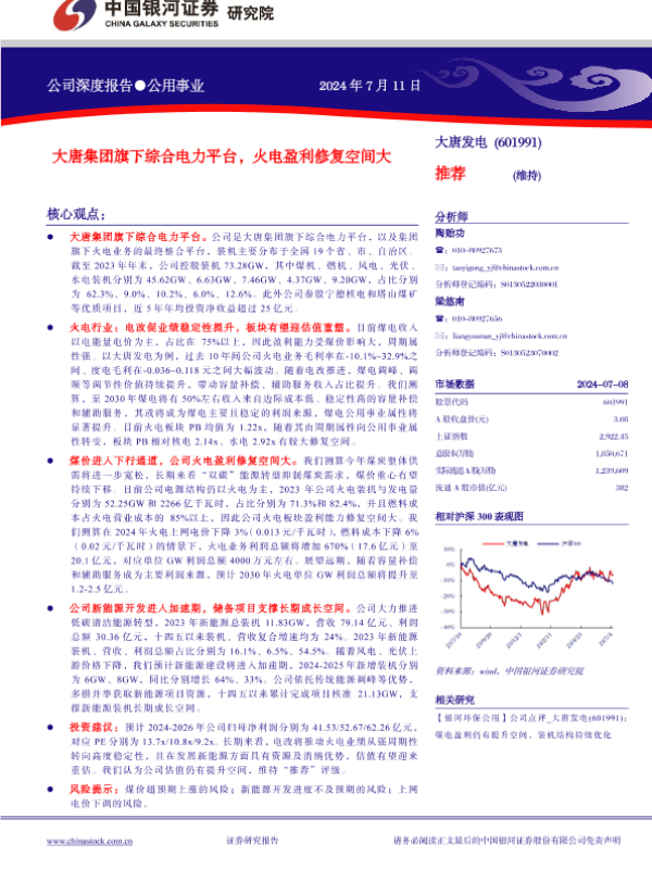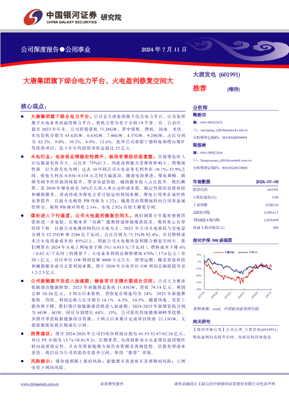 【银河证券】【20240711】大唐集团旗下综合电力平台,火电盈利修复空间大-32页