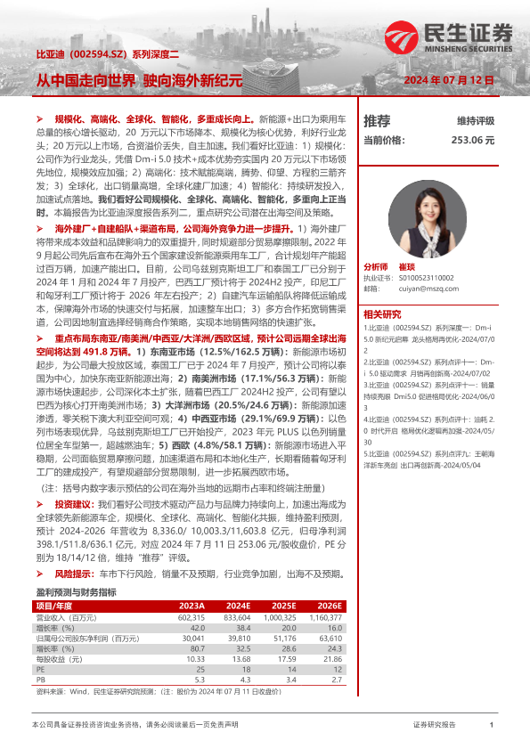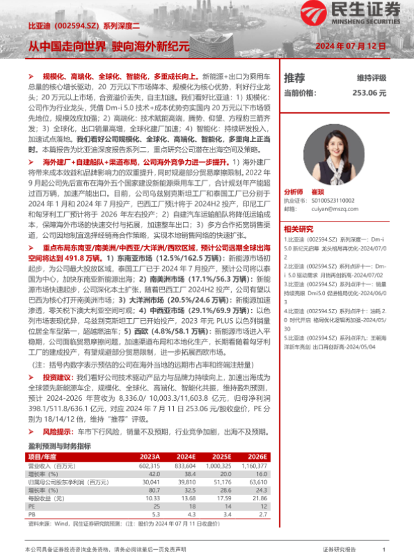 【民生证券】【20240712】比亚迪(002594.SZ)系列深度二:从中国走向世界 驶向海外新纪元-56页