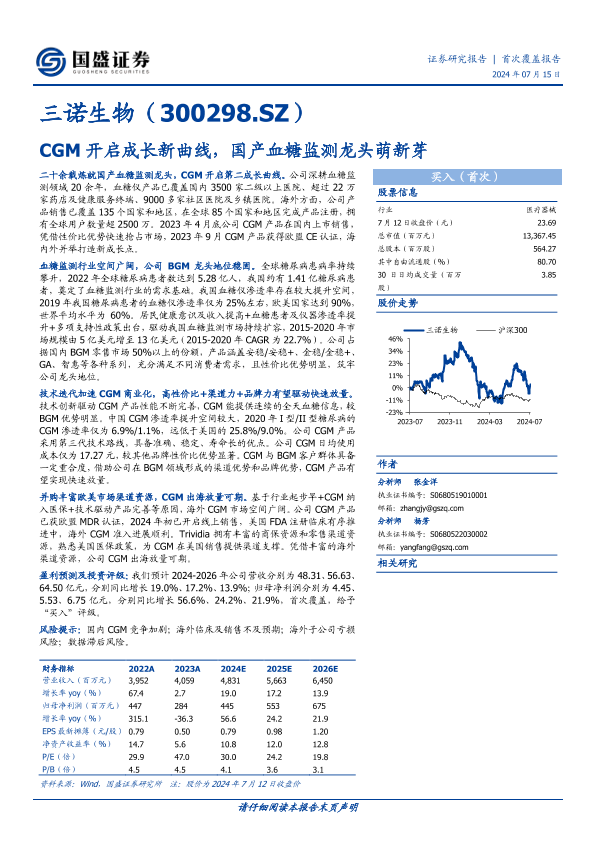 CGM 三诺生物 医疗器械 市场分析 血糖监测