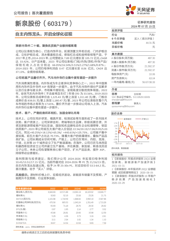【天风证券】【20240715】新泉股份-自主内饰龙头,开启全球化征程-28页