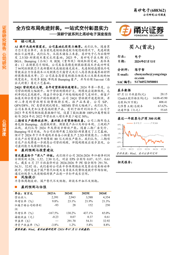 【甬兴证券】【20240715】深耕宁波系列之甬矽电子深度报告:全方位布局先进封装,一站式交付彰显实力-25页