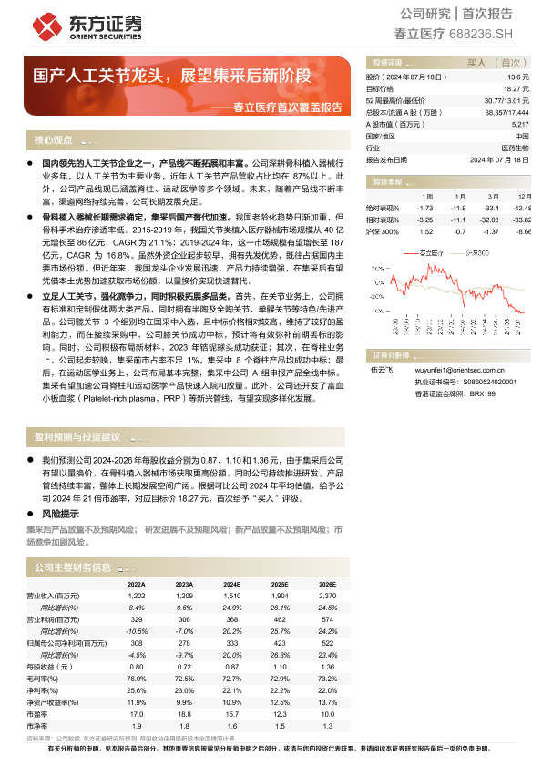 【东方证券】【20240718】春立医疗首次覆盖报告:国产人工关节龙头,展望集采后新阶段-35页