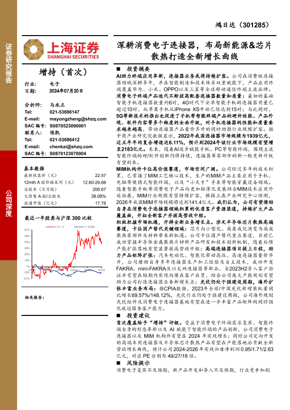 【上海证券】【20240720】深耕消费电子连接器,布局新能源&芯片散热打造全新增长曲线-27页
