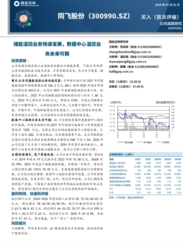 【国金证券】【20240722】同飞股份-储能温控业务快速发展,数据中心温控业务未来可期-22页