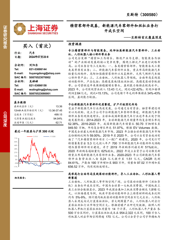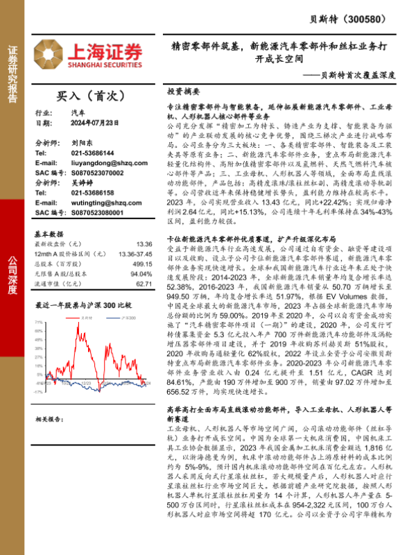 【上海证券】【20240723】贝斯特首次覆盖深度:精密零部件筑基,新能源汽车零部件和丝杠业务打开成长空间-34页