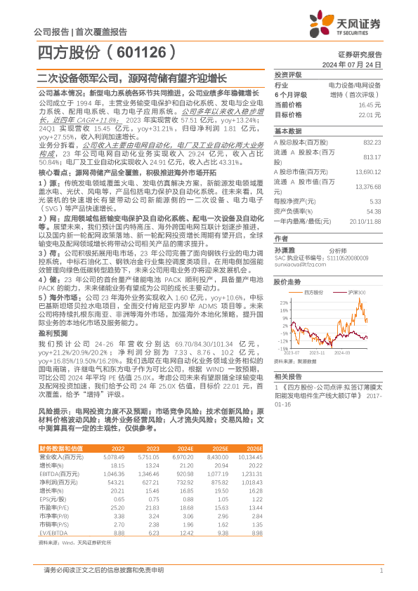 【天风证券】【20240724】四方股份-601126.SH-二次设备领军公司,源网荷储有望齐迎增长-28页
