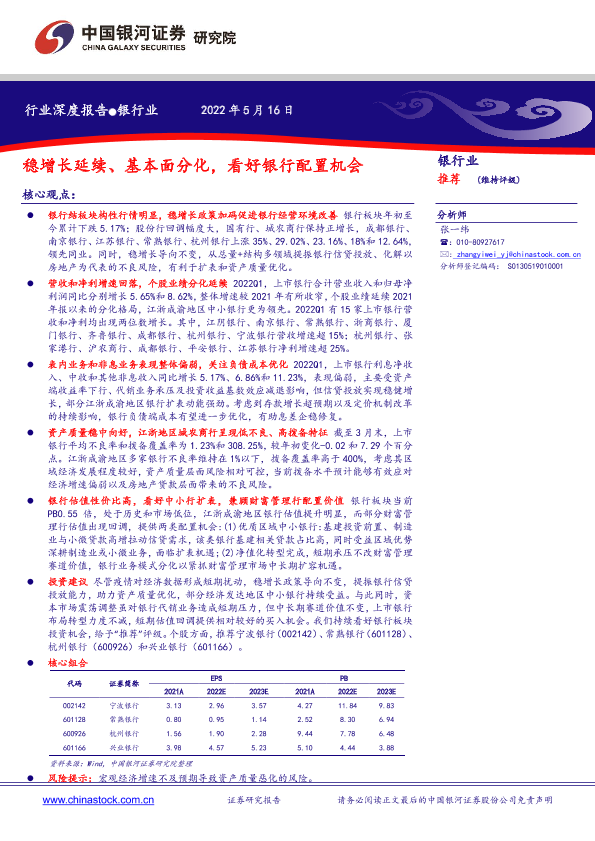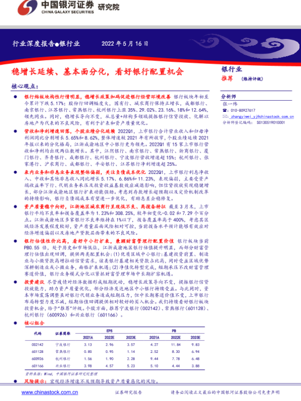 【银河证券】【20220516】银行业:稳增长延续、基本面分化,看好银行配置机会-24页