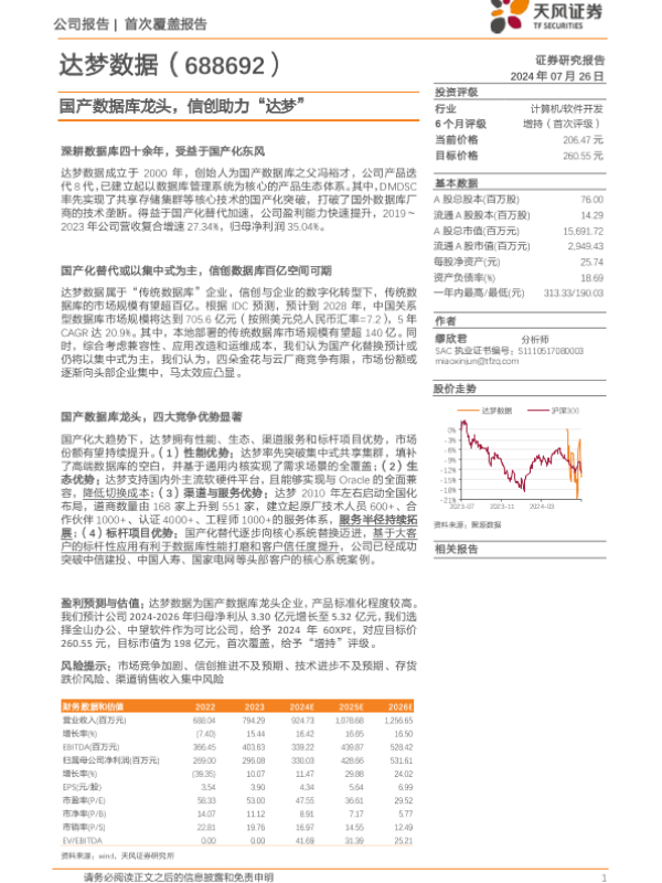 【天风证券】【20240726】20240726-天风证券-达梦数据-688692.SH-国产数据库龙头,信创助力“达梦”-24页