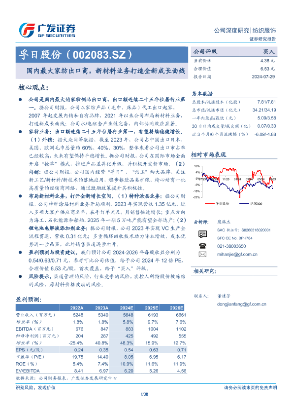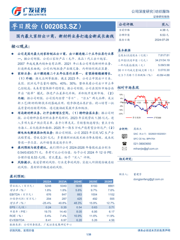 【广发证券】【20240729】国内最大家纺出口商,新材料业务打造全新成长曲线-38页