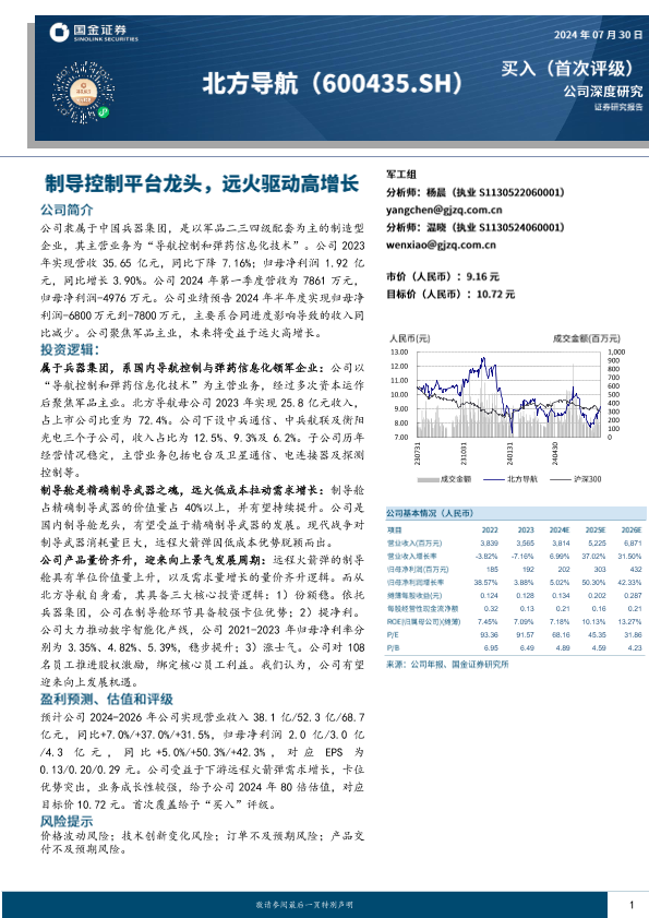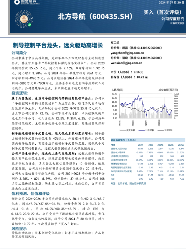 【国金证券】【20240730】国金证券-北方导航-600435.SH-制导控制平台龙头,远火驱动高增长-25页