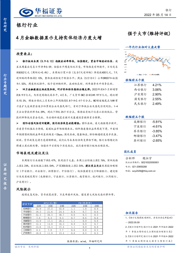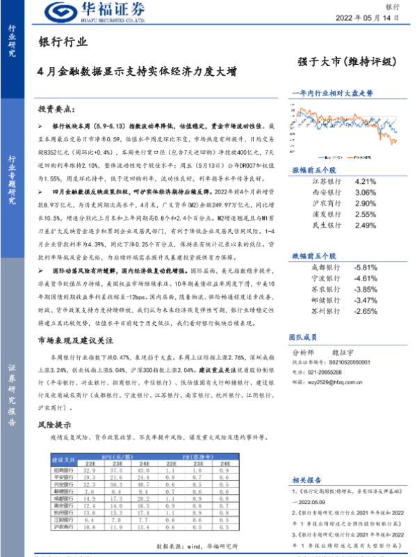 【华福证券】【20220514】银行行业:4月金融数据显示支持实体经济力度大增-18页