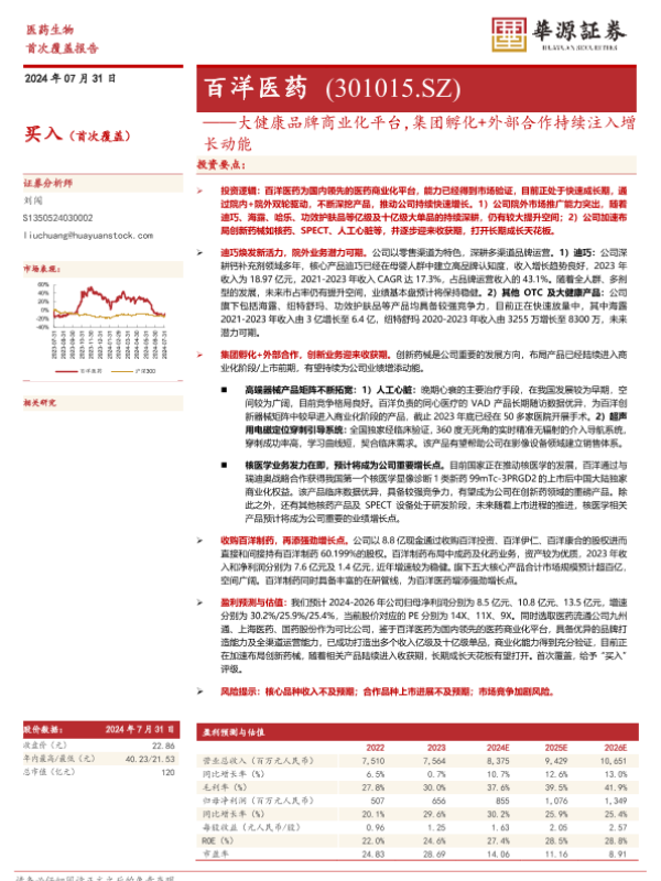 【华源证券】【20240731】大健康品牌商业化平台,集团孵化+外部合作持续注入增长动能-28页