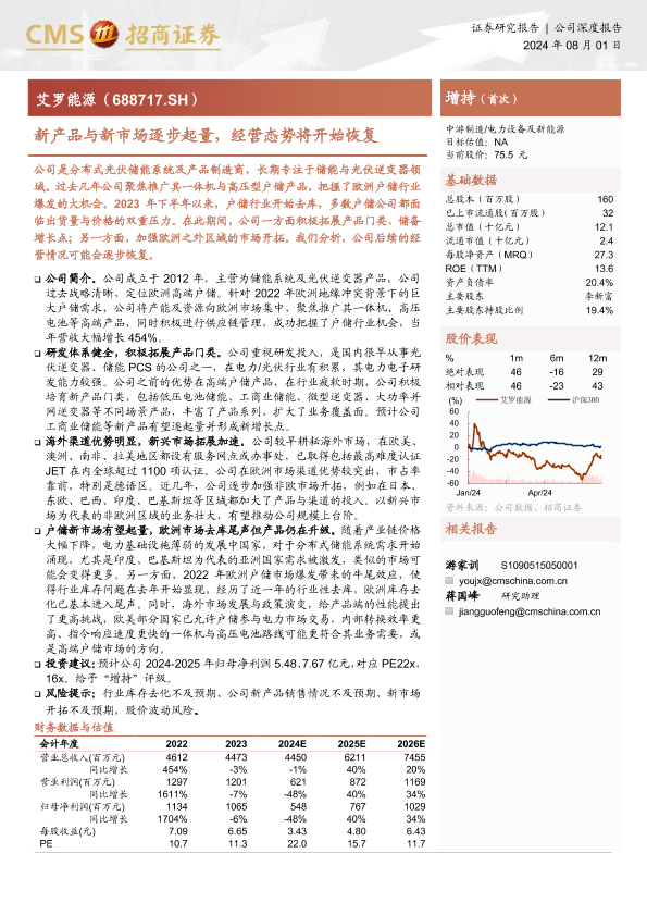 分布式光伏储能 市场拓展 新产品研发 经营恢复 艾罗能源