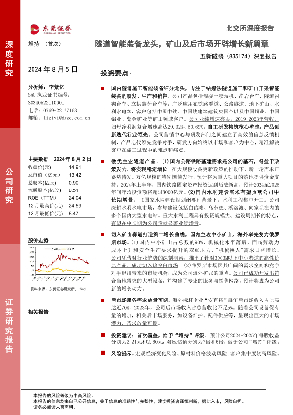 【东莞证券】【20240805】20240805-东莞证券-深度报告:隧道智能装备龙头,矿山及后市场开辟增长新篇章-23页