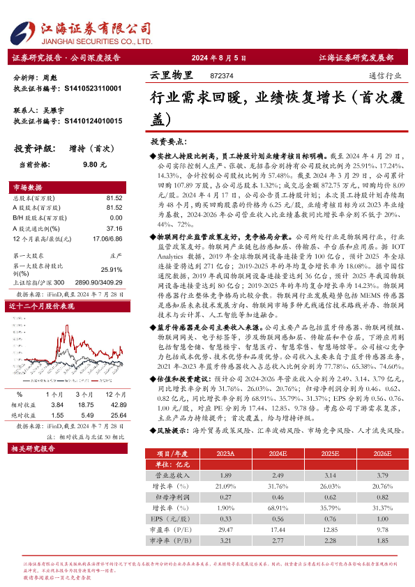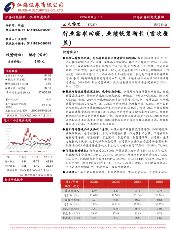 【江海证券】【20240805】行业需求回暖,业绩恢复增长(首次覆盖)-25页