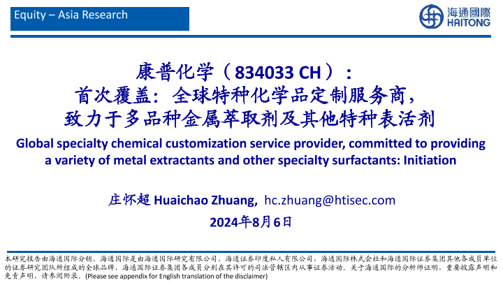 【海通国际】【20240806】全球特种化学品定制服务商,致力于多品种金属萃取剂及其他特种表活剂-45页