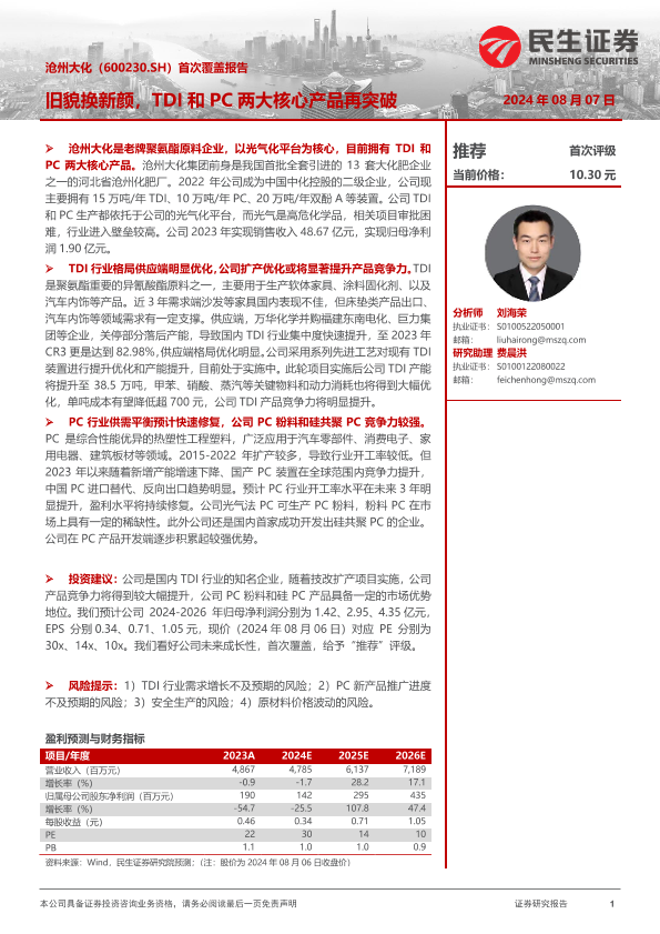 【民生证券】【20240807】旧貌换新颜,TDI和PC两大核心产品再突破-26页