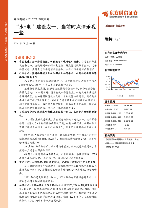 【东方财富证券】【20240808】中国电建(601669)深度研究:“水+电”建设龙一,当前时点请乐观一些-45页