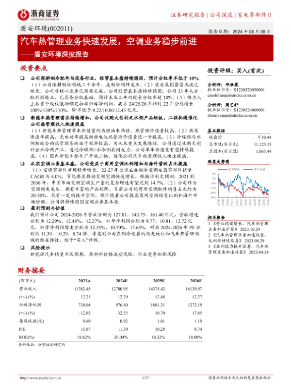 【浙商证券】【20240808】盾安环境深度报告:汽车热管理业务快速发展,空调业务稳步前进-27页