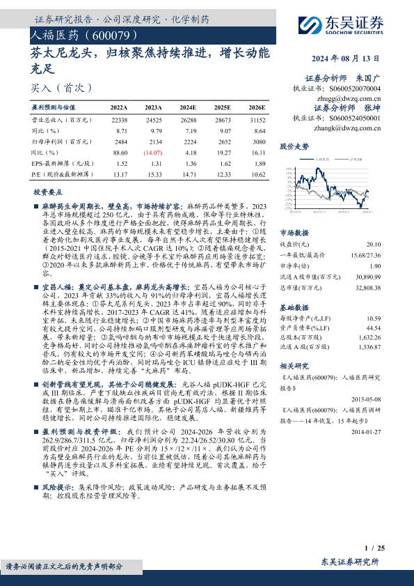 【东吴证券】【20240813】人福医药-芬太尼龙头,归核聚焦持续推进,增长动能充足-25页
