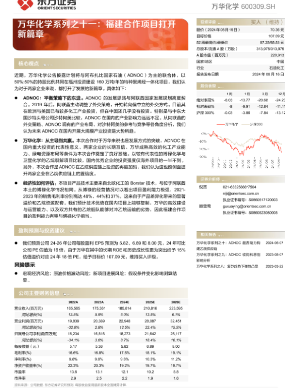 【东方证券】【20240816】万华化学系列之十一:福建合作项目打开新篇章-14页