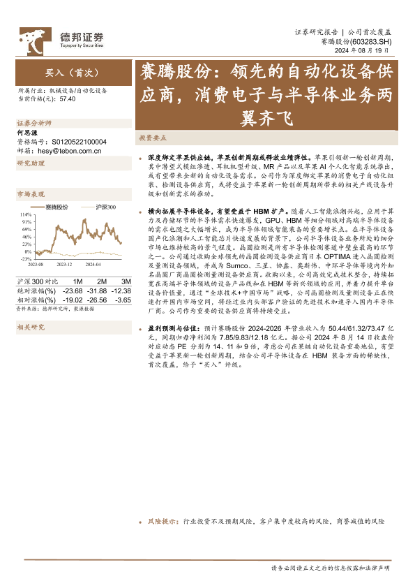 【德邦证券】【20240819】赛腾股份:领先的自动化设备供应商,消费电子与半导体业务两翼齐飞-22页