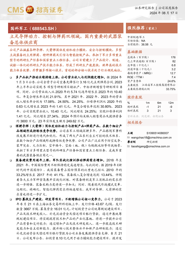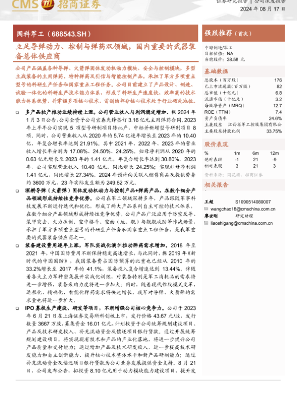 【海通证券】【20240817】立足导弹动力、控制与弹药双领域,国内重要的武器装备总体供应商-45页