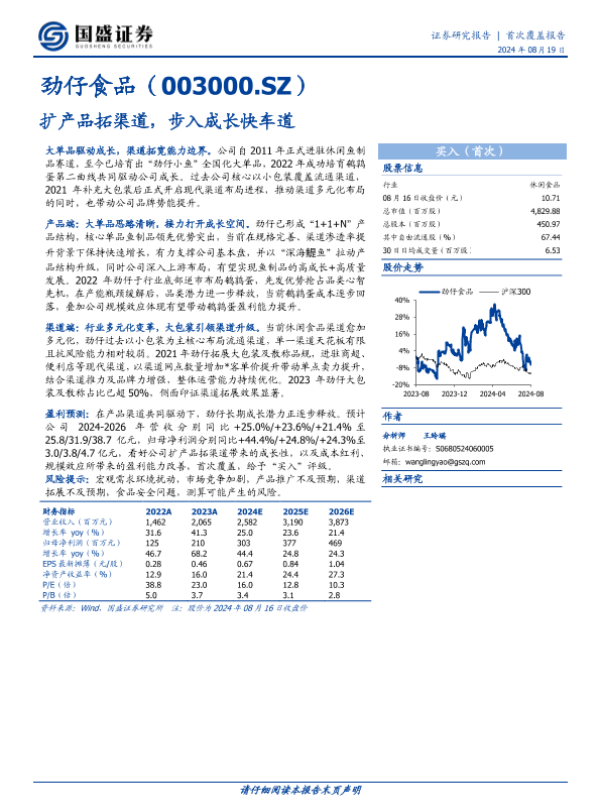 产品创新 休闲食品 劲仔食品 渠道拓展 财务预测