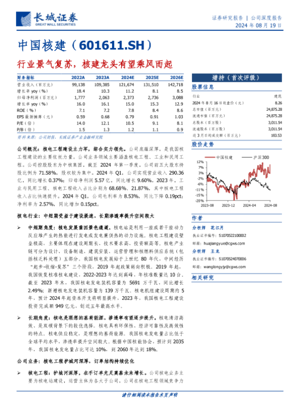 【长城证券】【20240819】行业景气复苏,核建龙头有望乘风而起-22页