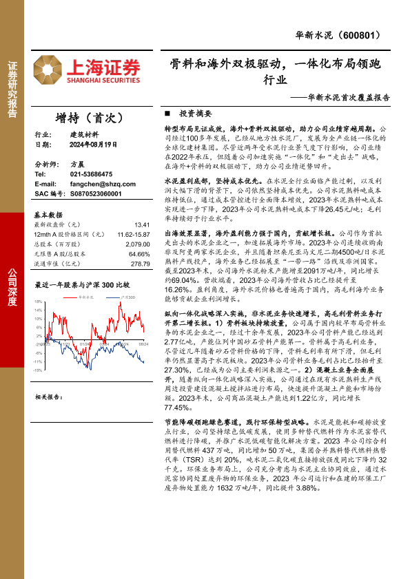 【上海证券】【20240819】华新水泥首次覆盖报告:骨料和海外双极驱动,一体化布局领跑行业-27页