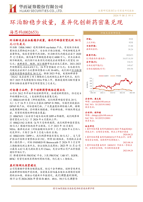 【华西证券】【20240819】环泊酚稳步放量,差异化创新药密集兑现-37页