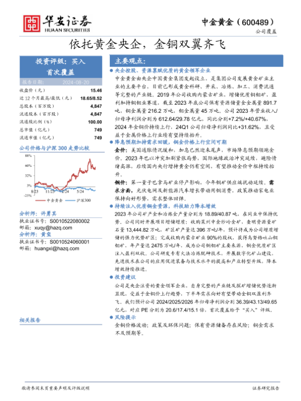 【华安证券】【20240820】依托黄金央企,金铜双翼齐飞-20页
