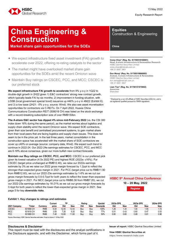 【HSBC Qianhai Securities Limited】【20220513】HSBC-中国建筑与工程行业-市场份额为国有企业带来机遇-25页
