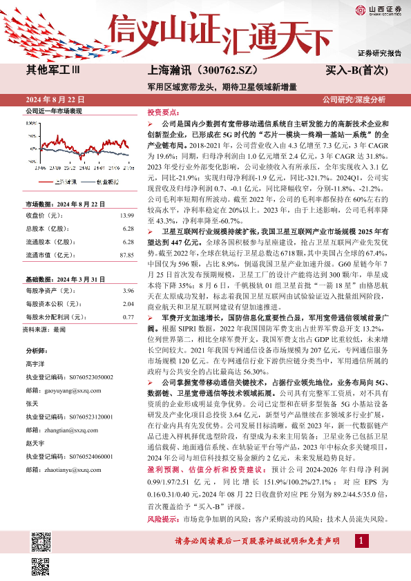 【山西证券】【20240822】军用区域宽带龙头,期待卫星领域新增量-32页