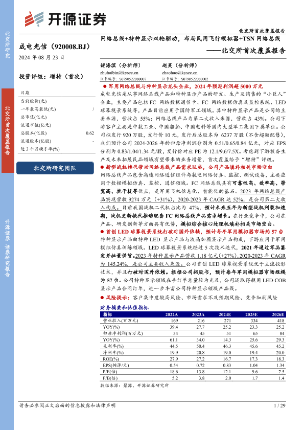 【开源证券】【20240823】网络总线+特种显示双轮驱动,布局民用飞行模拟器+TSN网络总线-29页