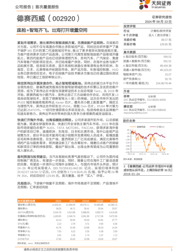 【天风证券】【20240823】德赛西威-座舱+智驾齐飞,出海打开增量空间-14页