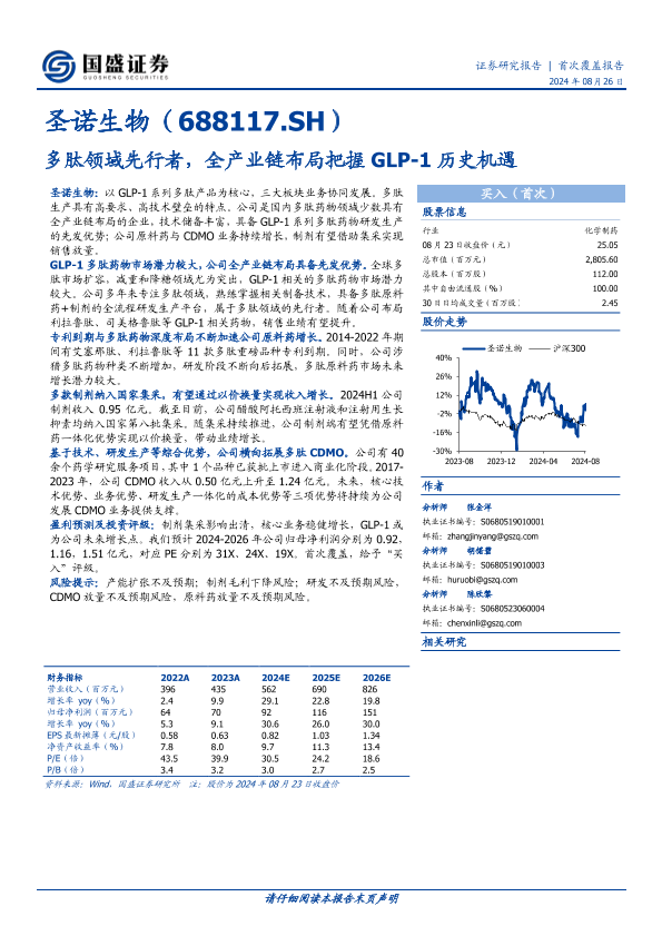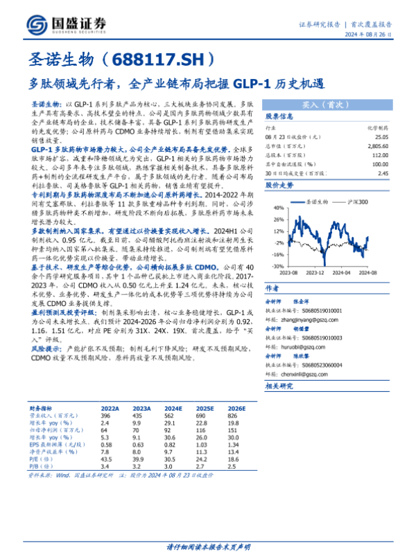 【国盛证券】【20240826】圣诺生物:多肽领域先行者,全产业链布局把握GLP-1历史机遇-27页